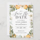 Citrus, laranja + casamento florescente salvem o convite de data. Linda folhagem de aquarela, fruta e ilustrações florais. Parte de uma coleção.