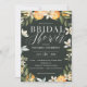 Citrus, laranja + convite de festas de chá de panela. Linda folhagem de aquarela, fruta e ilustrações florais. Parte de uma coleção.