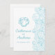 Simples desenho em aqua azul de uma concha de moluscos, com ondas gráficas do mar, Belo azul-aqua em um convite de casamento de praia costeira branca. Um convite de excelente para uma praia, inspirado na costa ou casamento de destino do oceano Edite estes convites com seu próprio nome de noiva e noivos e palavras de convite. Desenho de tinta shell exclusivo e design por Sarah Trett. www.sarahtrett.com para www.mylittleedenweddings.com