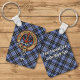 Crachá da crista Clan Clark rodeado por uma correia e fivela sobre fundo tartano. Texto personalizado de ambos os lados.