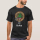 Crachá da crista Clan MacBeth cercado por uma correia e fivela sobre fundo tartano. Texto personalizado.