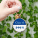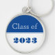 A classe de Formando de chaveiro é mostrada em um design de cor azul e branca. Texto: Classe de 2023.