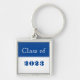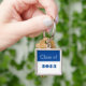 A classe de Formando de chaveiro é mostrada em um design de cor azul e branca. Texto: Classe de 2023.