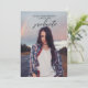 Convite à Festa de formatura de Fotografias Moderno. Possui um layout de foto frontal e traseira mínimo honrando o formando. Altere facilmente as palavras, fontes e cores para torná-las o seu estilo. Disponível como download para sua conveniência.