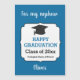 Este é um cartão de ímã de graduação de sobrinho personalizado projetado em azul. Você pode facilmente personalizar com o ano de aula, o nome e a escola do aluno. Um cartão de graduação único mantém-se com um apoio magnético para o formando.