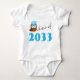 A classe de t-shirt graduado do bebê do futuro 2033 tem uma coruja adorável vestir um chapéu azul do formando e faz uma grande ideia do presente para o formando da classe de 2033.