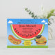 Convide a família e os amigos a uma festa de formatura do CHURRASCO com este convite bonito que caracteriza uma melancia, cachorro quente, um Hamburger vestindo um conselho do mortor e uma espiga de milho. Personalize com seus detalhes da festa de formatura.