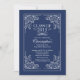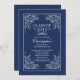 Elegante classe vintage de convite para festas de formatura de 2015 apresentando um belo quadro de rolagem formal vintage definido em um clássico fundo azul marinho escuro. Disponível em nosso compro em uma variedade de cores populares da escola.
