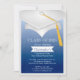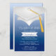 Classe moderna de convite para festas de formatura de 2014 com boné branco e faixa branca de formando definida em um fundo azul escuro marinho de cor d'água ombre para um segundo grau ou formandos para um garoto ou garota. Visite nosso compro para conhecer uma variedade de temas populares de tendências em cores escolares.