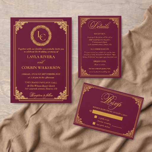 Classic Gold Frame Royal Monogram Wedding Suite Criado por Sowmya Raja