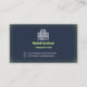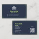 Um cartão de visita azul de hotel clássico com um código QR tem espaço para um nome de hotel, slogan e identificadores de redes sociais. O lado de retorno contém o nome, o endereço da posição e uma chamada para ação a ser registrada através do código QR. Para obter assistência ou para discutir um projeto personalizado, entre em contato com https://t.me/KBMD3signs_chat.