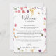 Esta clássica carta de boas-vindas colorida do casamento selvagem é perfeita para um casamento rústico. A design apresenta flores silvestres brancas, amarelas, roxas e brancas com folhagem em fundo de rosa e aquarela verde. Personalize a frente com uma mensagem de boas-vindas para seus convidados e seus nomes. Personalize as costas com a programação de eventos e outras informações úteis.