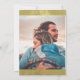 Foto de convite para o seu dia especial. Simples, elegante sotaque de ouro falso sobre convite de casamento de fundo de marfim luxuoso, com combinação de caligrafia de ornamentado. O reverso tem uma foto do casal de casamento com os sotaques dourados.