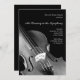 Os elegantes Classical Violin Symphony Invices são perfeitos para escolas de música ou orquestras convidarem convidados para um recital ou performance ao vivo. Este clássico convite personalizado apresenta uma fotografia a preto e branco de um instrumento de corda de violino de madeira com fundo preto.