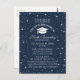 Design de Reunião Escolar, seja para Segundo grau ou pode ser alterado para o Elegante Universitário, estilo clássico. Fundo azul-noturno com estrelas. Elemento e cotação de gradação incluídos. Por favor, personalize os detalhes da celebração. Todo o texto é editável, para que possa ser facilmente alterado para um convite ou anúncio para um evento de graduação.