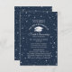 Design de Reunião Escolar, seja para Segundo grau ou pode ser alterado para o Elegante Universitário, estilo clássico. Fundo azul-noturno com estrelas. Elemento e cotação de gradação incluídos. Por favor, personalize os detalhes da celebração. Todo o texto é editável, para que possa ser facilmente alterado para um convite ou anúncio para um evento de graduação.