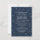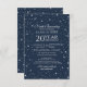 Design de Reunião Escolar, seja para Segundo grau ou pode ser alterado para o Elegante Universitário, estilo clássico. Fundo azul-noturno com estrelas. Citação incluída. Por favor, personalize os detalhes da celebração. Todo o texto é editável, para que possa ser facilmente alterado para um convite ou anúncio para um evento de graduação.