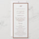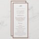 Os tons castanhos ricos, misturados perfeitamente com a elegância suave da náutica, criam um eterno e um design sofisticado. Este meticulosamente elaborado programa de casamento é um guia perfeito para os seus convidados, oferecendo uma visão dos momentos que se desenrolam no seu dia especial. O clássico e elegante design dá o tom para uma celebração que exude o refinamento e o encanto.