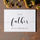 Um cartão de presente simples e minimalista para escrever uma mensagem pessoal e sincera para o seu pai no dia do seu casamento. Totalmente personalizável com suas cores favoritas (texto e fundo). Você pode adicionar uma mensagem no verso ou deixá-la vazio se preferir escrever manualmente a mensagem mais tarde.