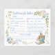 Este tema clássico de Peter, o Rabbit é uma escolha maravilhosa para o seu chá de fraldas. Esta previsão para o jogo Bebê/cartão de conselho para os pais terem a aquarela química da arte do Conto de Peter, o Coelho, incluindo o Coelho-Mãe e os seus gêmeos. O jogo/ conselho aparece em cada lado do cartão para que o conselho possa ser individualizado para cada gêmeo. Este jogo é divertido durante o seu chá e torna-se uma maravilhosa manutenção depois. Veja o resto da Coleção de Chás de fraldas do Clássico Peter, o Coelho Gêmeos, em minha loja, sob coleções.