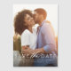 Um simples mas elegante cartão magnético de data para anunciar o seu noivado e o próximo casamento. A foto vertical do solteiro apresenta texto branco no fundo com bastante espaço para nomes e detalhes do grande dia.