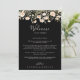 Esta clássica carta de boas-vindas ao casamento preto de flor silvestre é perfeita para um casamento moderno. O design apresenta uma elegante e elegante cor d'água, pincelada, rosa, flores silvestres multicoloridas desenhadas à mão, perfeitamente organizadas em buquês atraentes. Personalize a frente com uma mensagem de boas-vindas para seus convidados e seus nomes. Personalize as costas com a programação de eventos e outras informações úteis.