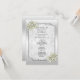 Linda classe e sofisticado Programa Casamento com uma moldura na moda prateada sobre fundo prateado com decorações de flores decoradas com pérolas bonito nos cantos todos sobre um cheio branco de fundo úmido de espirais e floreamentos. Um convite romântico e elegante para qualquer evento. Todo o texto é totalmente personalizável para atender às suas necessidades, se você quiser ajudar a personalizar seu produto ou quiser combinar produtos, entre em contato comigo na minha loja e eu terei muito prazer em ajudá-lo.
