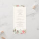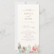 Guie seus convidados com nosso programa de casamento. Um fundo bege, embelezado por verde de inverno, bagas sagradas, cones de pínus e folhagem, serve como pano de fundo para lindas serifas e tipografia de guião.