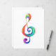 Chave musical desenhada a partir de camadas multicoloridas de cores de arco-íris em fundo branco.