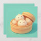 This heart-melting design features three incredibly sweet steamed dumplings with simple, joyful faces and soft rosy cheeks. Rendered in a high-quality 3D clay style, the dumplings have a smooth, matte doughy texture and are clustered together inside a light brown bamboo steamer basket. The open lid of the steamer rests behind the dumplings, suggesting a fresh and warm meal just ready to be enjoyed. Set against a clean, solid teal background, the minimalist and "kawaii" aesthetic creates a charming food-themed scene that is perfect for anyone who loves dim sum, Asian cuisine, or whimsical character art. This cheerful dumpling postcard is a wonderful choice for sending a "thinking of you" note or a playful greeting to your favorite dining partner. You might choose to use this cute food card for a brunch invitation or to celebrate a fun culinary milestone with your family members. It also makes a precious decorative piece for a kitchen wall or a bright addition to a food-themed scrapbook as a small token of happiness. This versatile design is also an excellent choice for restaurant anniversary announcements, Lunar New Year party invites, or as a heartwarming way to share a short message of joy for any situation or event.