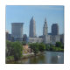 Vista icônica de Cleveland, Ohio, do lado do rio, destacada em azulejo de cerâmica decorativa. Este azulejo único pode ser usado como uma trivit, para exibição, ou adicionado a uma caixa de presentes de madeira, para apresentar como uma memória única da cidade!