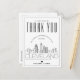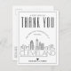 Uma forma excelente de mostrar apreço ao convidado que viajou tão longe do seu caminho para vê-lo, nesta bela cidade. Este obrigado especial que você faz é adaptado ao convidado que esteve no seu casamento na bela cidade de Cleveland, Ohio. Ele apresenta uma linha do horizonte estilizada da cidade na frente do cartão. Ao contrário, é um ponto para sua própria mensagem exclusiva. Use as funções de personalização para adicionar uma foto, se desejar.
