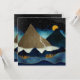 Uma paisagem abstrato com cores e texturas únicas mostrando uma cena de montanha da noite com as luzes brilhantes dos alpinistas e uma lua em tons de azul, ouro, ciano e amarelo.