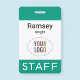Personalize facilmente nosso crachá de nome de funcionarios profissional com o logotipo da sua empresa, o nome do funcionário ou outro texto personalizado. É plástico pvc e disponível com um jardim, clipe ou um rolo retrátil. Desenvolvido em esmeralda verde e outras cores com uma design moderna minimalista do MISOOK. Todas as cores são personalizáveis. Nenhuma quantidade mínima de ordem e nenhuma taxa de configuração. Todas as encomendas são satisfeitas pela Zazzle em produtos do Zazzle. O MISOOK NÃO tem suas informações de personalização, envio ou cartão de crédito, portanto entre em contato diretamente com a Zazzle para fazer perguntas, inclusive sobre como personalizar seu design.