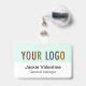 Personalize facilmente nosso crachá de nomes plásticos de duro profissional com o logotipo da sua própria empresa, o nome do funcionário, o título do cargo ou outro texto personalizado. É feito de plástico PVC durável. Você pode personalizar a cor de fundo do logotipo para corresponder às cores corporativas. Disponível com um jardim, clipe de metal ou clipe retrátil. As dimensões são de 3,38 polegadas x 2,13 polegadas. Nenhuma quantidade mínima de ordem e nenhuma taxa de configuração. Todas as encomendas são satisfeitas pela Zazzle em produtos do Zazzle. O MISOOK NÃO tem suas informações de personalização, envio ou cartão de crédito, portanto entre em contato diretamente com a Zazzle para fazer perguntas, inclusive sobre como personalizar seu design.
