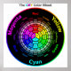 This CMY (Cyan, Magenta, Yellow) color wheel has names, mixes (shades/tones/tints), temperatures (warm/cold), and orders (primary/secondary).