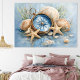Bring a calm nautical focal point to your space with this Coastal Compass Starfish Wall Art Print. The ocean blue compass rose, warm sand tones, and seashell accents pair perfectly with coastal living rooms, beach bedrooms, and lake house decor. A clean, classic piece for a gallery wall, entryway, or above-the-sofa statement print.