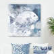 Tela de pintura de peixes brancos e azuis de Boho Costeiro Imprime com mudo as cores azuis aqua das lindas formas moles do oceano e camadas de textura e cores que representam o relaxante sentimento dos peixes tropicais na água cristalina. Este impressão de arte costeira na parede de vassoura em tons azuis e brancos atordoantes é um pedaço de decoração de praia na moda, arte de muro tropical, decoração costeira, perfeito para qualquer casa costeira, casa temática de praia, e casa de terra firme.