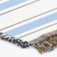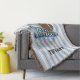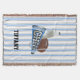 cobertor de lança franja do cheerleader feito em uma cinza azul, clara e um padrão listrado branco. Gráficos de futebol e dois megafones, decoram o meio do cobertor. Personalize o texto negro em negrito para atender às suas necessidades. Excelente para se manter aquecido, nas arquibancadas, e como um arremesso para sua cama.