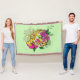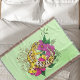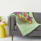 Uma lagartixa-leopardo se senta entre flores e henna num fundo de todos os verdes