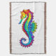 Articulação artificial, brilhante, arco-íris, cavalo de mar poligonal sobre fundo branco. Tatuagem brilhante.