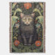 Cobertor Art nouveau gato preto e flores vermelhas