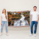 Uma bela cena de uma cachoeira contra a floresta de outono