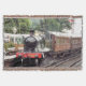 Um trem a vapor bem restaurado e carruagems de uma era passada chegando à estação de trem. Inglaterra Reino Unido.