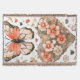Borboletas graciosas, corações intrincados, e flores delicadas dançam através da canvas neste encantador design de aquarelas vermelho e marrom.