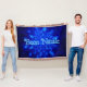 Um enxame de flocos de neve fractais azuis. O texto italiano "Buon Natale" aparece em azul e branco brilhantes.