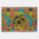 Buquês de girassóis, folhas de outono e mirtilos e besouros