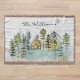 Apresentando nosso cobertor de peões de madeira russa e gafanhoto da floresta russa com aquarela, com uma cabana de aquarela aninhada em uma floresta de pinheiros verde nebulosos. Excelente de aluguel de cabana de férias, alojamento, casa de lago e casa de chalé.