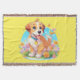 Um cobertor com uma fotografia de um filhote fofo sentado entre as flores. Ele parece muito feliz por estar cercado por flores e borboletas. O presente perfeito para dar àqueles que amam cachorros. Contém conteúdo generativo.