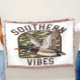 Este cobertor branco apresenta uma ilustração detalhada de um pato-real em voo, colocado sobre um fundo de camuflagem dentro de uma armação arquivada. O texto "SOUTHERN" é arquivado acima do gráfico e "VIBES" é colocado abaixo numa letra simples e em negrito. A design sugere uma apreciação pela vida selvagem e um estilo de vida sulista.